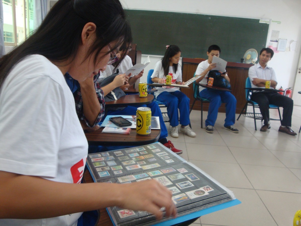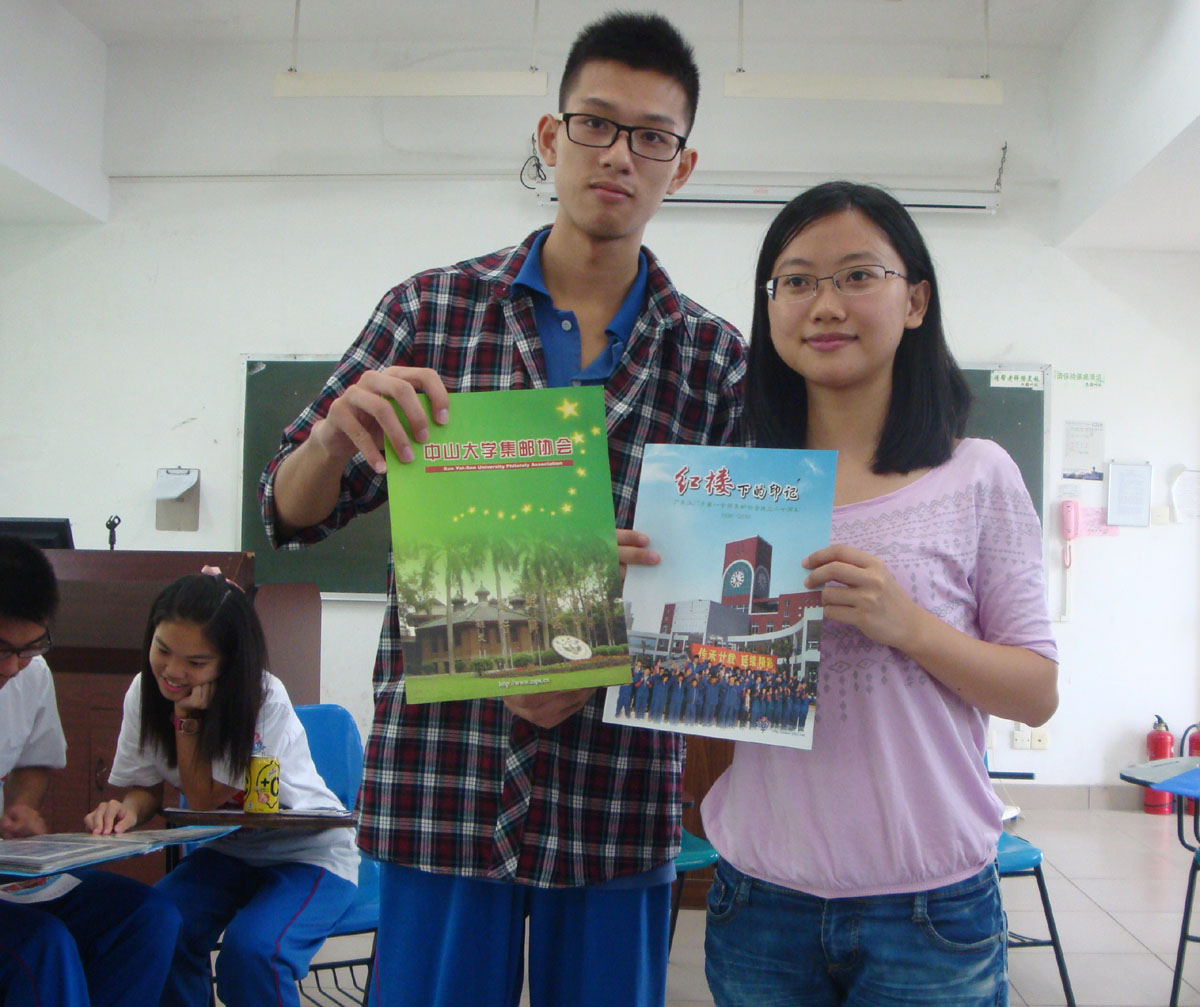2013年10月20日,江门一中集邮协会组织部分会员同学到中山大学珠海校区参观,与中山大学集邮协会进行交流。双方会长交换了协会纪念画册,并相互介绍了开展活动的体会和经验。随后,同学们还游览了《中国古镇——珠海唐家湾镇》邮票的原地珠海唐家湾会同古村和云飞碉楼,感受古镇的无穷魅力。