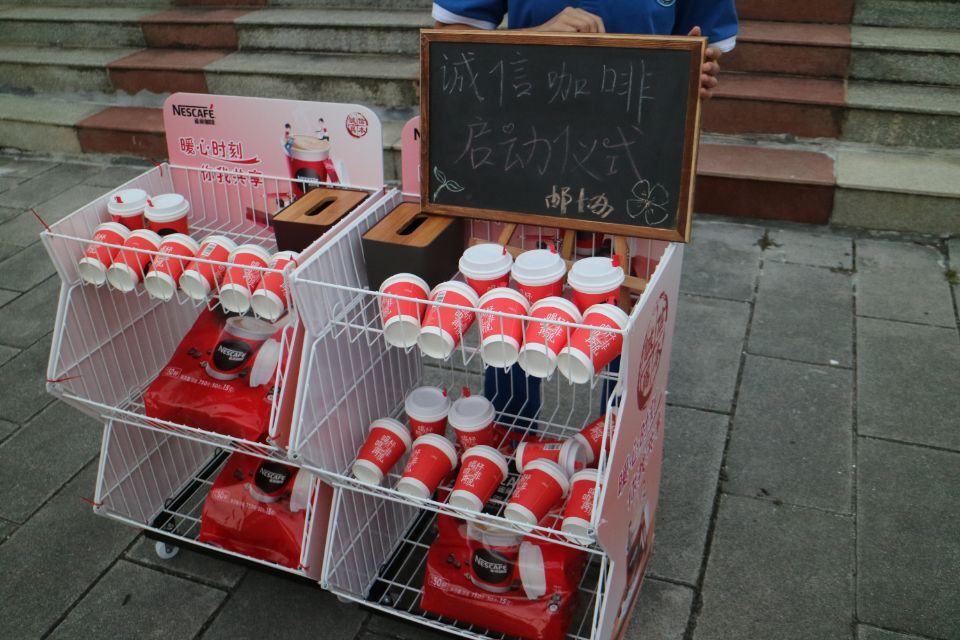 诚信咖啡是江门一中集邮协会引进的大project。何为诚信咖啡?就是通过摆设简易小摊点进行无人售卖,大家自觉投币,每杯咖啡3元,检验同学们的诚信